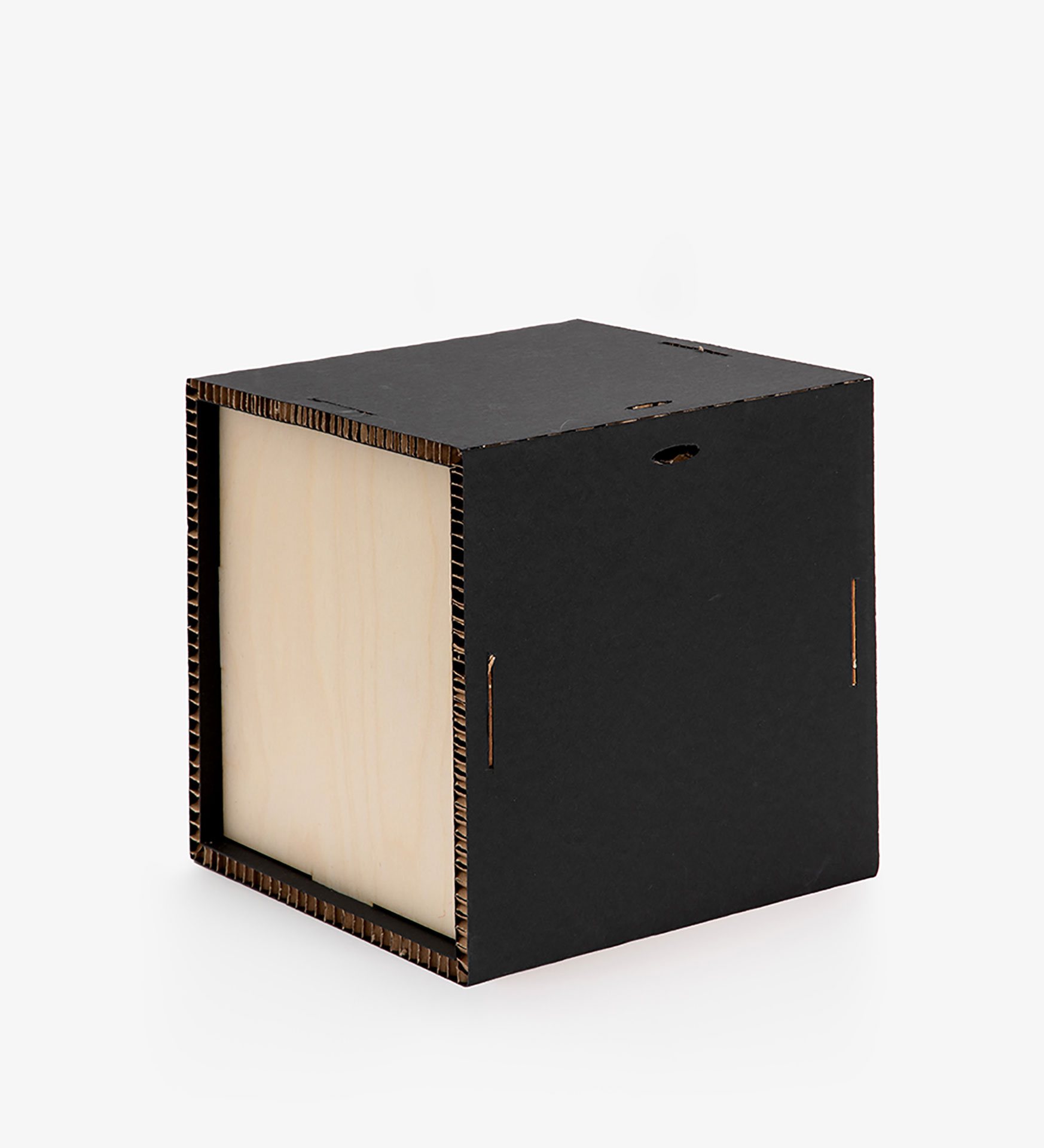 Ga Scatola P205 205x205x215 Kraft. Scatola quadrata cartone kraft nero e legno Settori indicati Panetteria Gastronomia Rosticceria Ho.Re.Ca. Street food